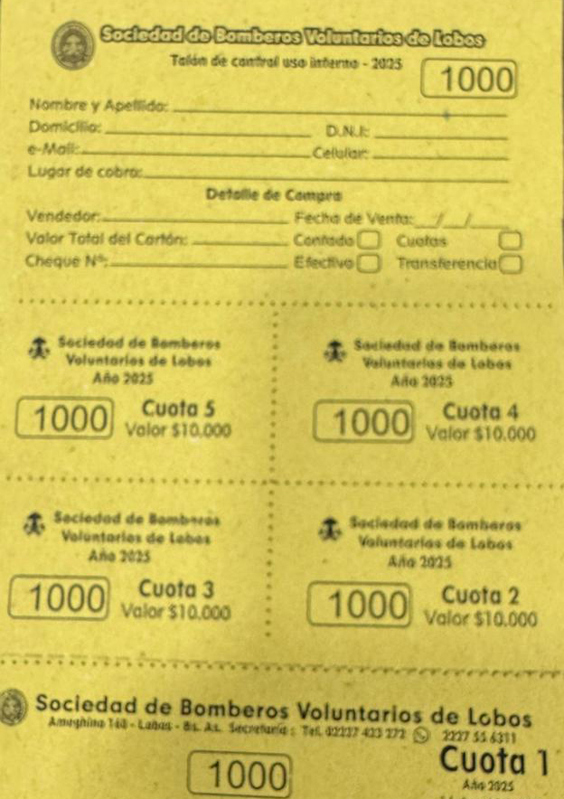 DÃas atrás, la Sociedad de Bomberos Voluntarios de Lobos lanzó una versión económica de la rifa que tiene vigente, para los últimos cinco meses de la misma, buscando colocar los números que no han sido vendidos hasta ahora.